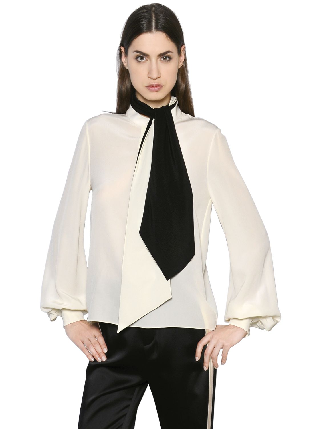 BLUSA DE SATEN DE SEDA CON LAZO EN EL CUELLO